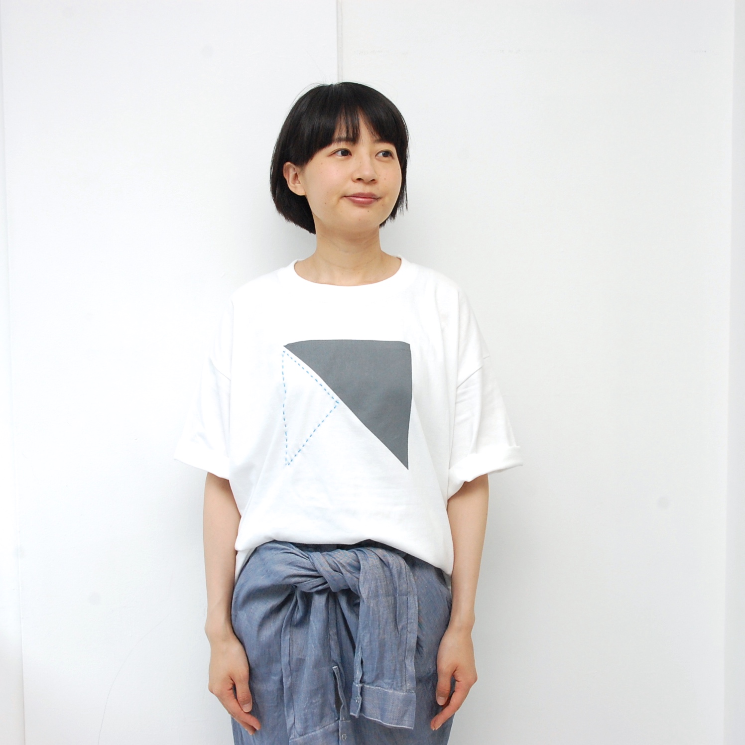 さんかくモチーフをプリントとステッチであしらいました。ハンドメイドの温かさ感じて頂けると嬉しいです。