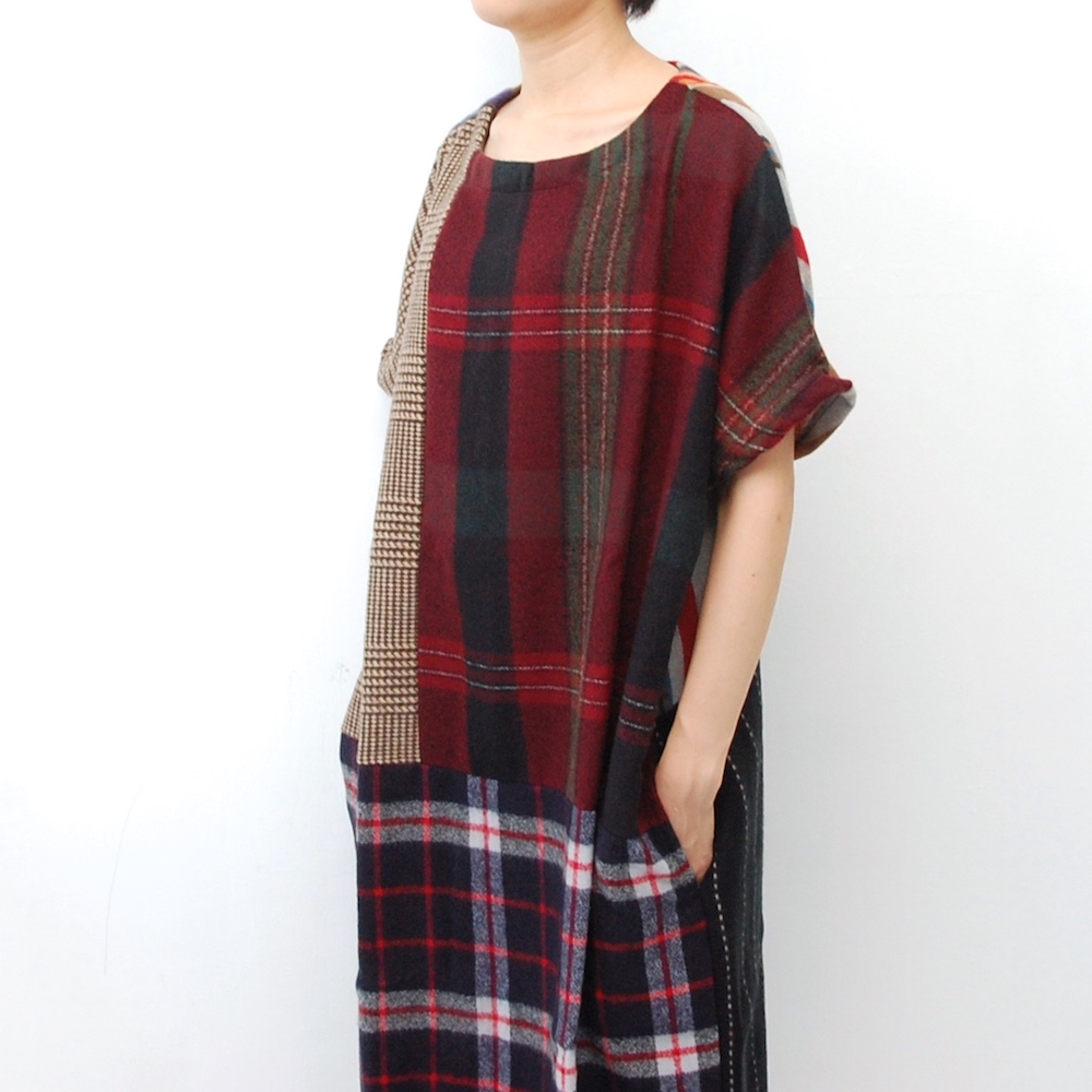 横から見ると柄の多さがよくわかります。でも、ひとつひとつ落ち着いたカラーのチェックやストライプなので組み合わさっても、うるさくならず上手にまとまっています。